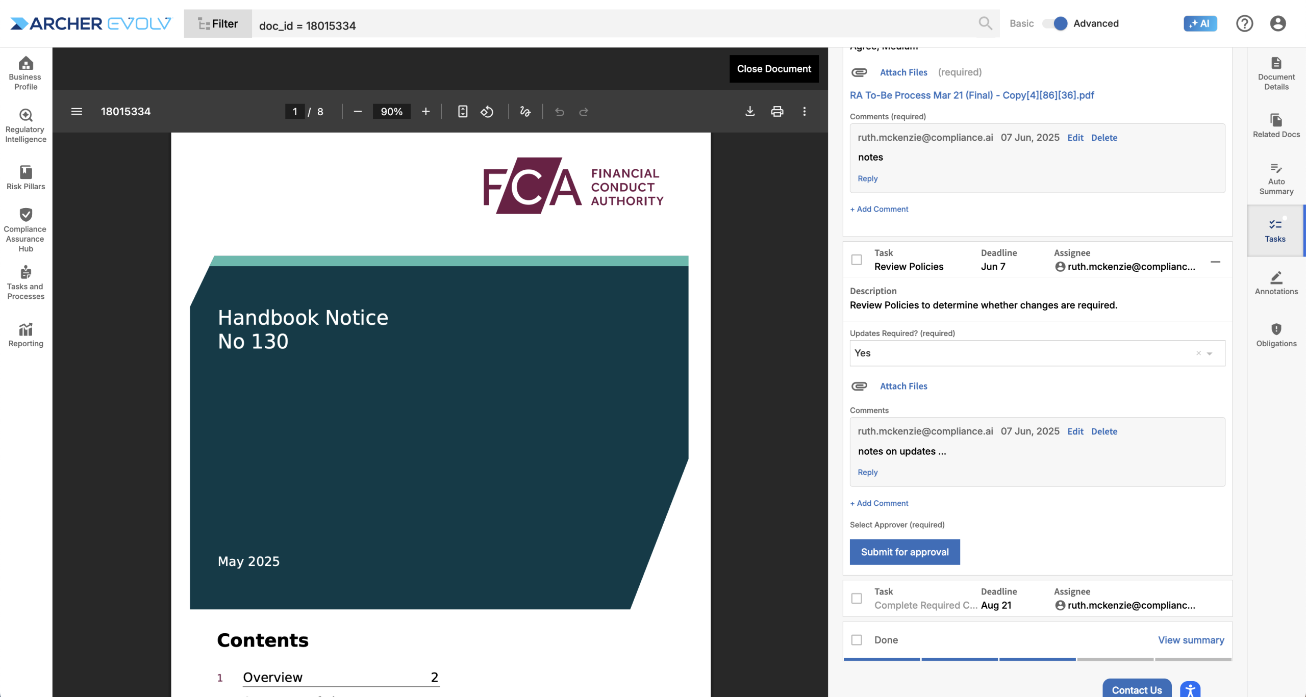 Once in the document, simply open the tasks, review and complete. The specific steps to complete the task are defined in the workflow itself. For example, you may need to add comments, add a date, or enter a dropdown selection before you can mark a task as Done. In the case below, you need to select a dropdown and add a comment. Once you have completed the necessary steps within the tasks, click the checkbox to complete the task.
