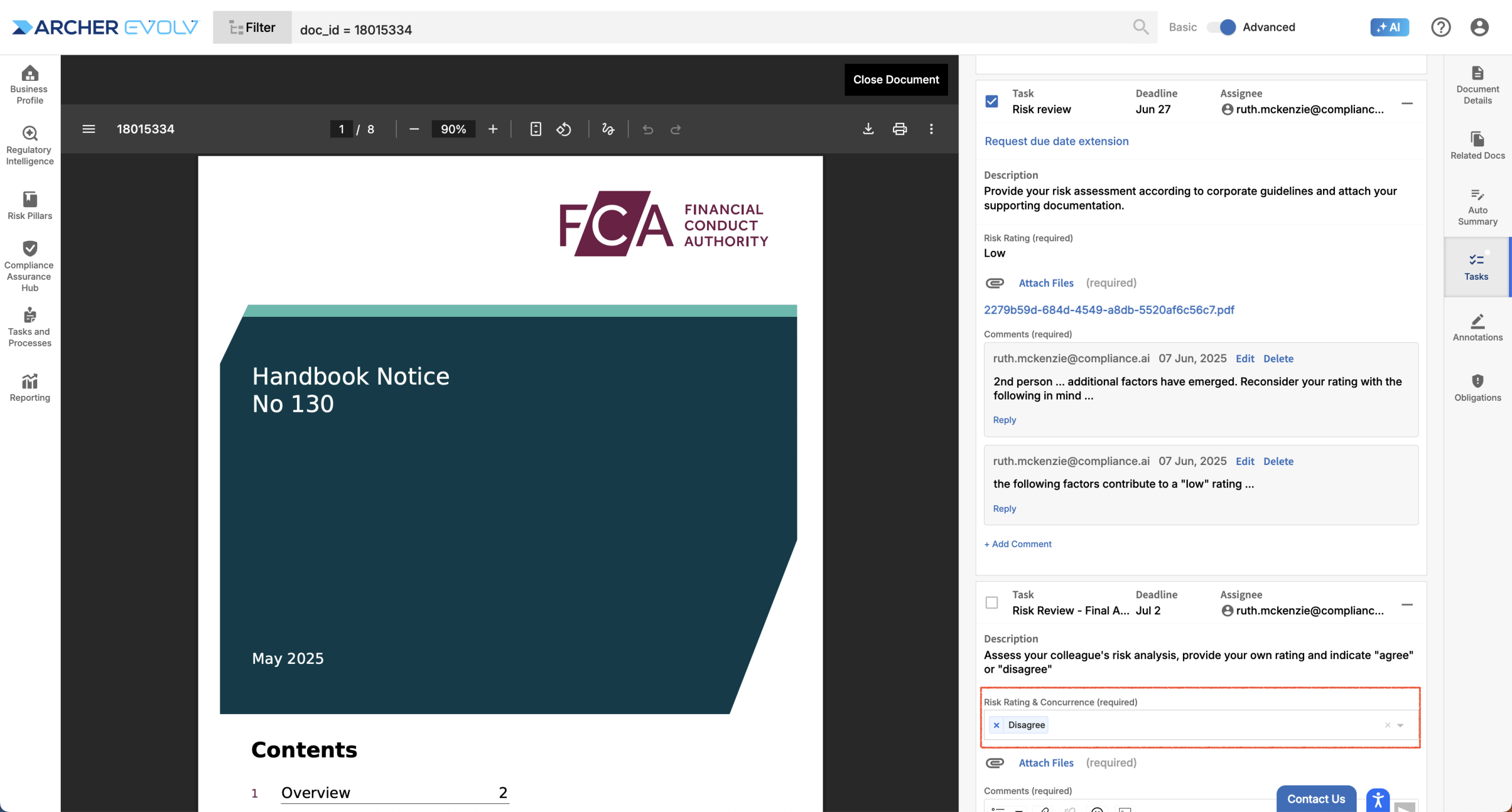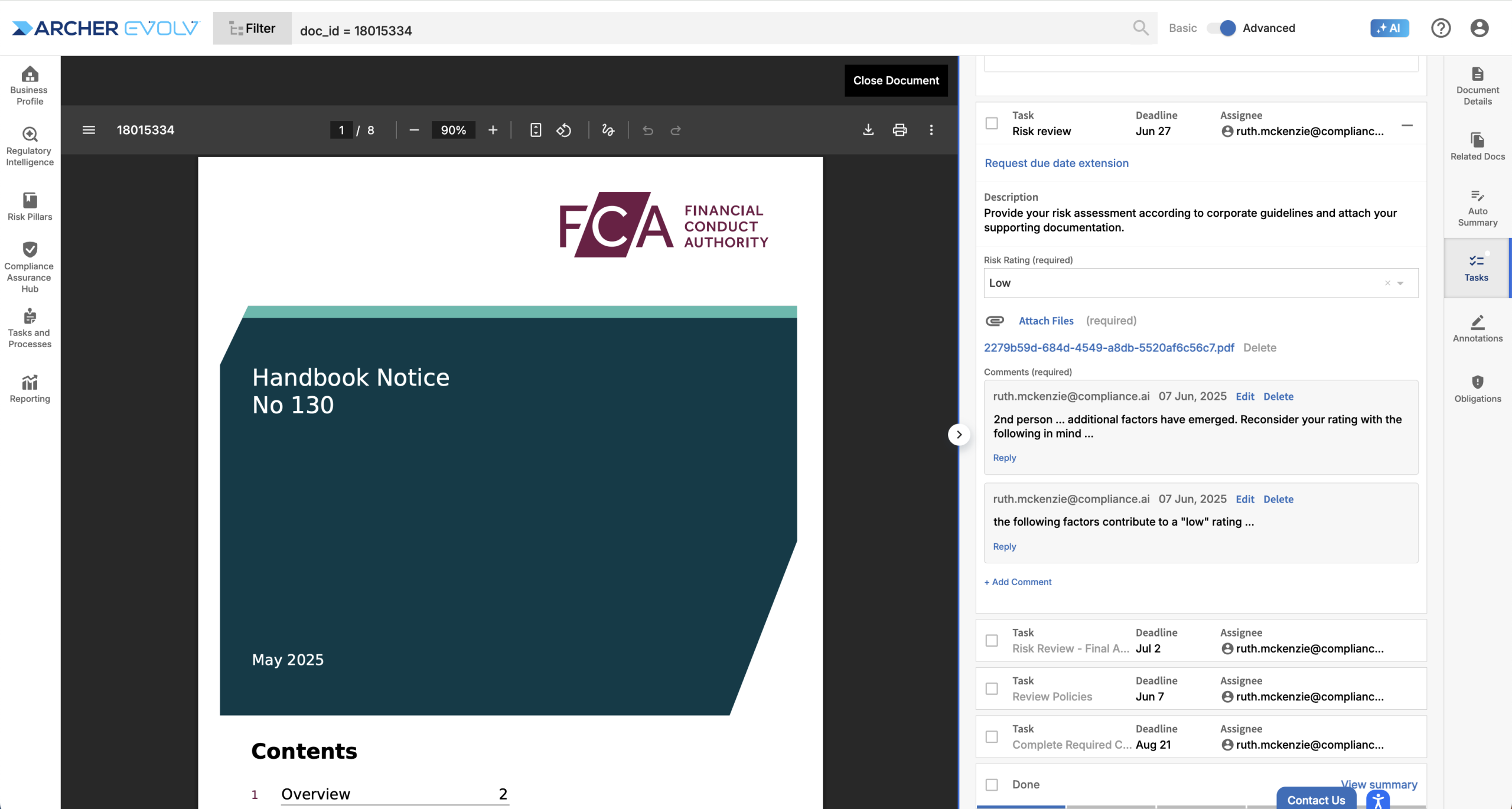 The document view provides a holistic document-level view of workflows, enabling managers to understand the status of analysis efforts with respect to key documents.