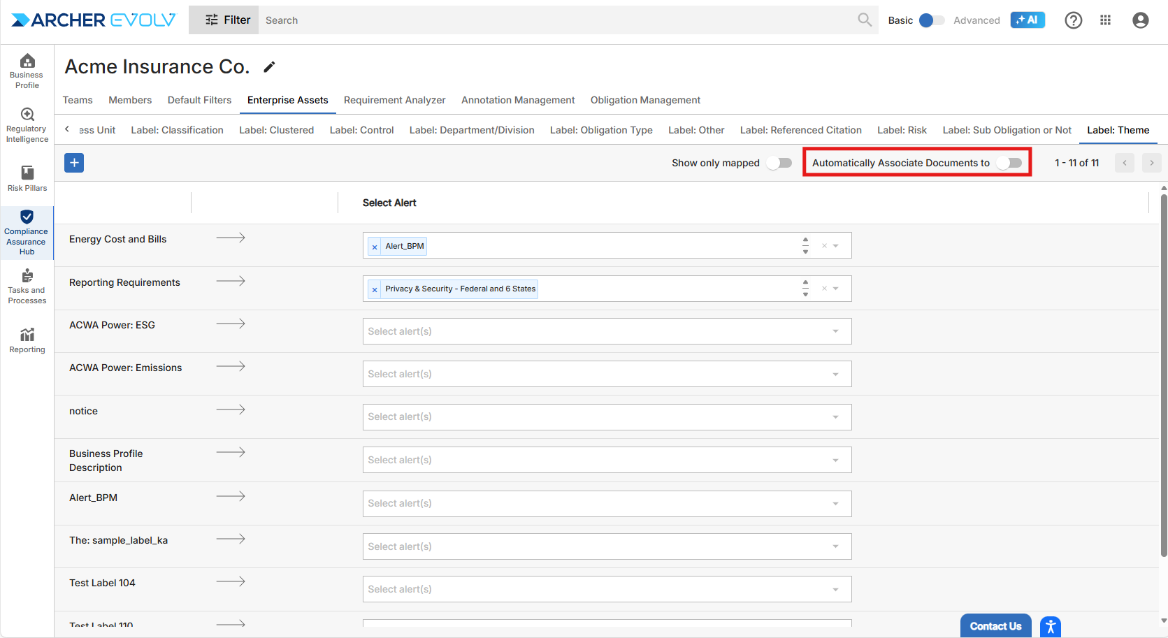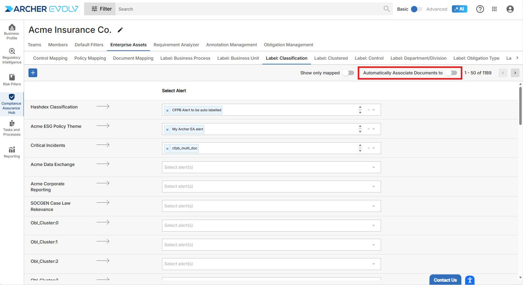 Archer Evolv not only provides you with the capability to monitor and respond to regulatory changes, identify, assess and monitor regulatory and operation risks and establish controls where none exist, we also provide additional capabilities that automate the classification of policies, controls, and regulatory documents. Enterprise Assets, which is available within the Business Profile AI Assistant and also within the Compliance Assurance Hub provides the infrastructure necessary to automate what is otherwise a manual and time-consuming process. Enterprise Assets consists of six components.