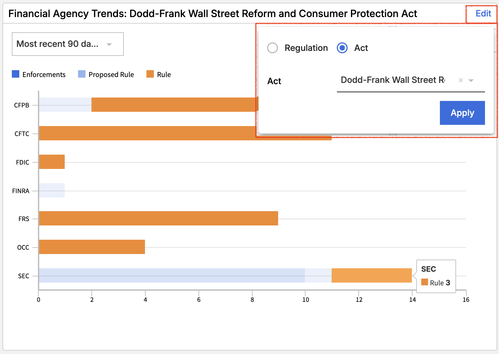 Financial Agency Trends: Track final rules and enforcements related to named regulations or a selected acts over an extended period of time to understand the impact of this critical legislation.
