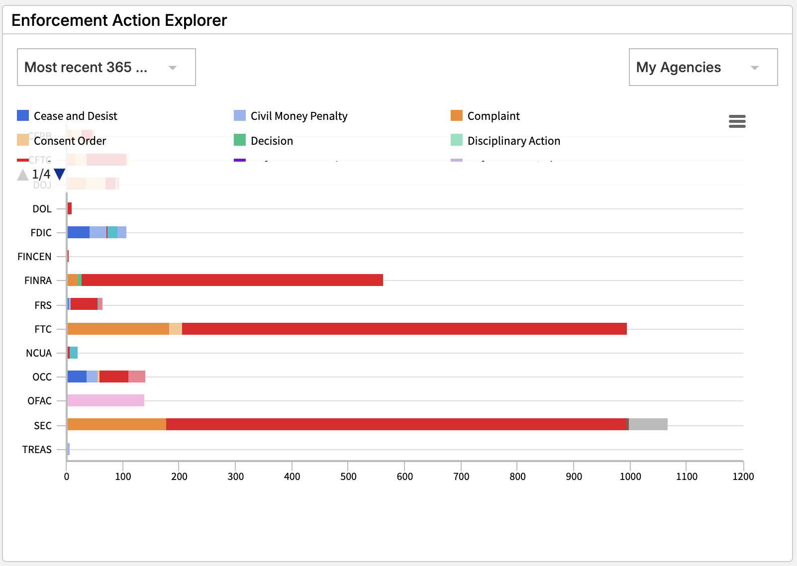 Enforcement Action Explorer: Check on the types of enforcements published by your agencies over specific time periods.