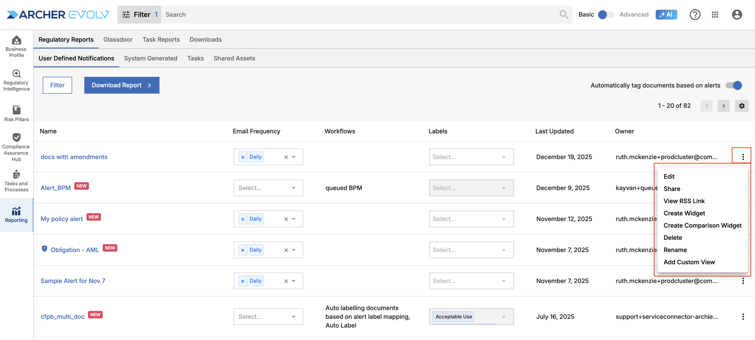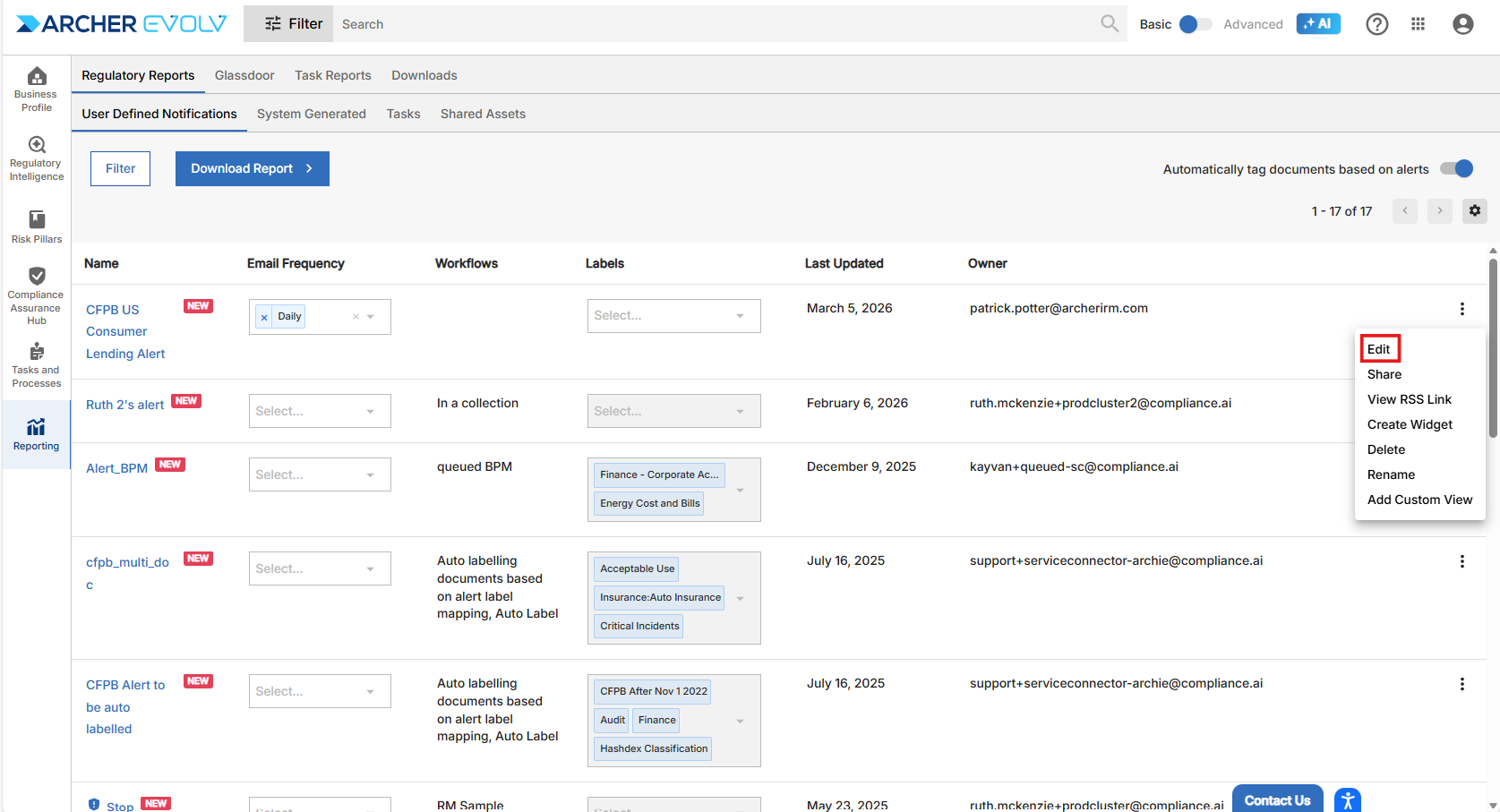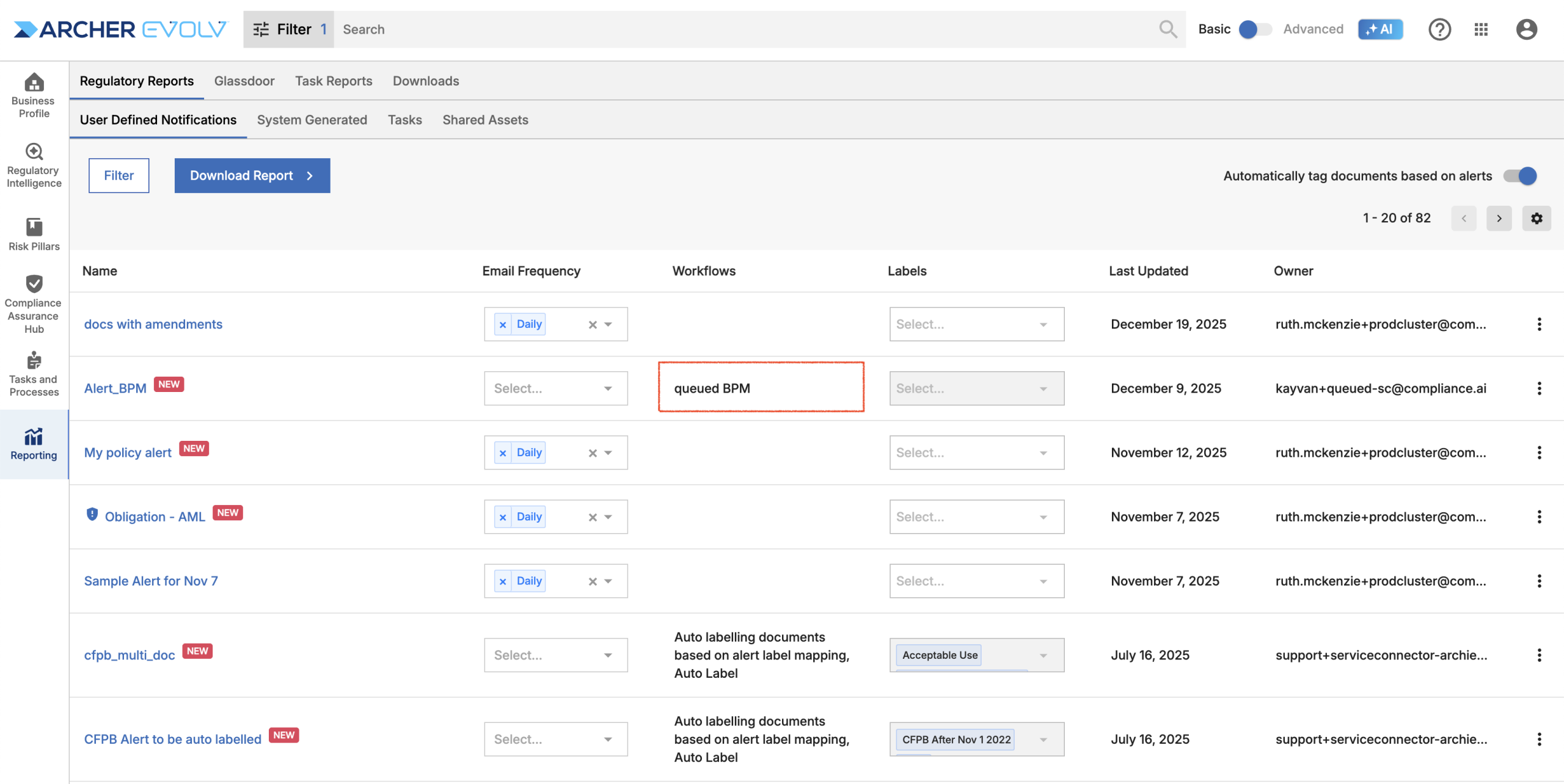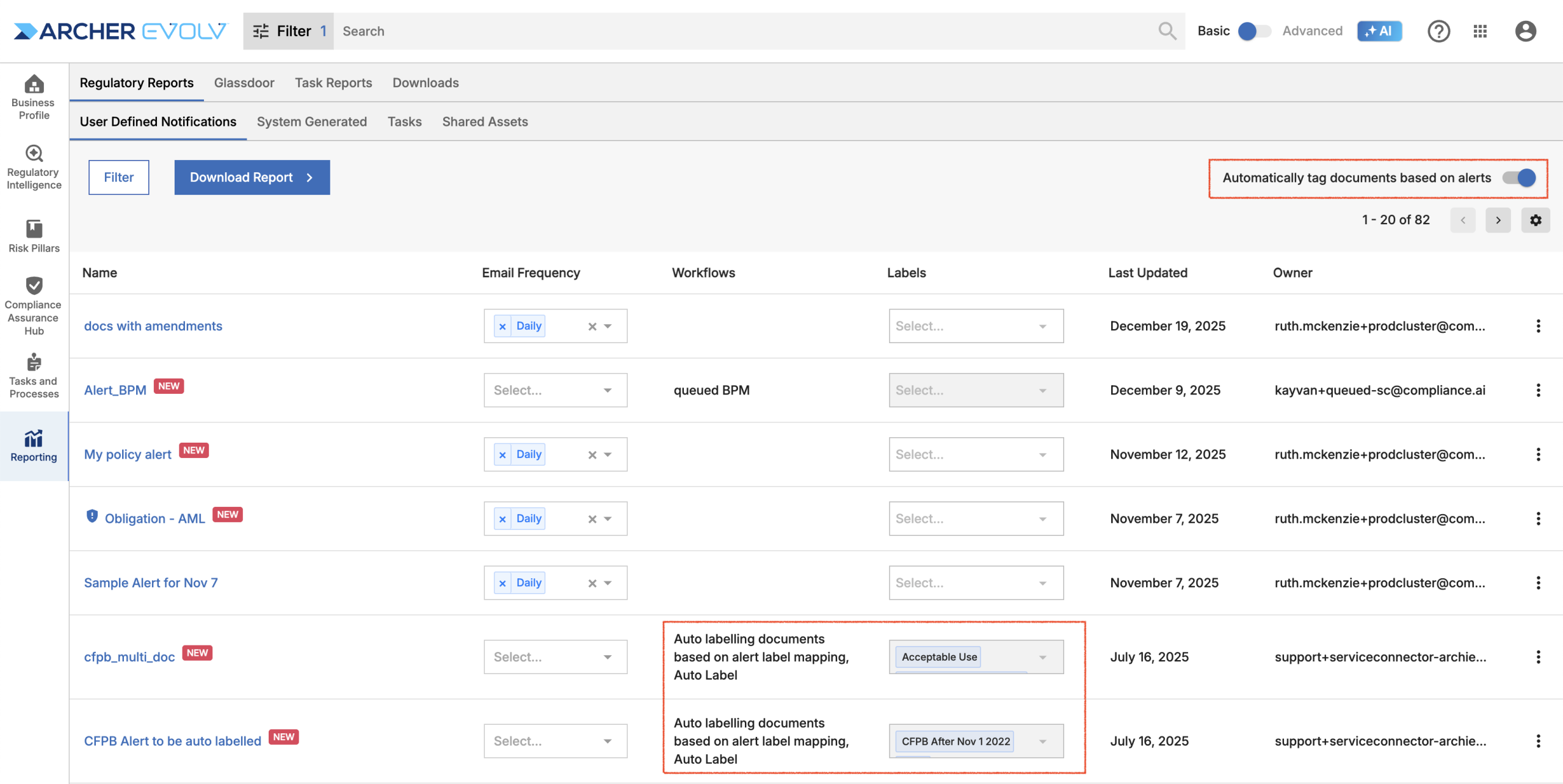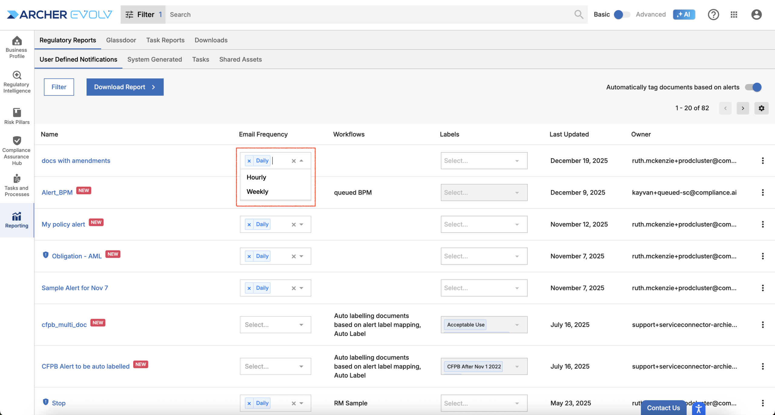 - Email Alerts: Rely on email alerts to indicate when you need to log into Archer Evolv to review new relevant documents.