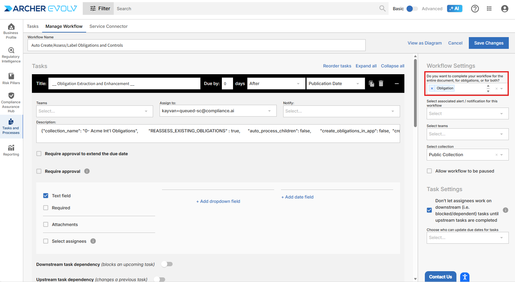 Archer Evolv gives you the ability to create workflows that are pertinent at both the document and the obligation level.