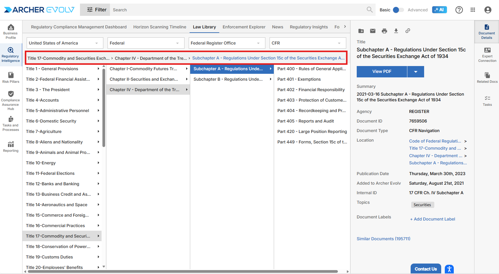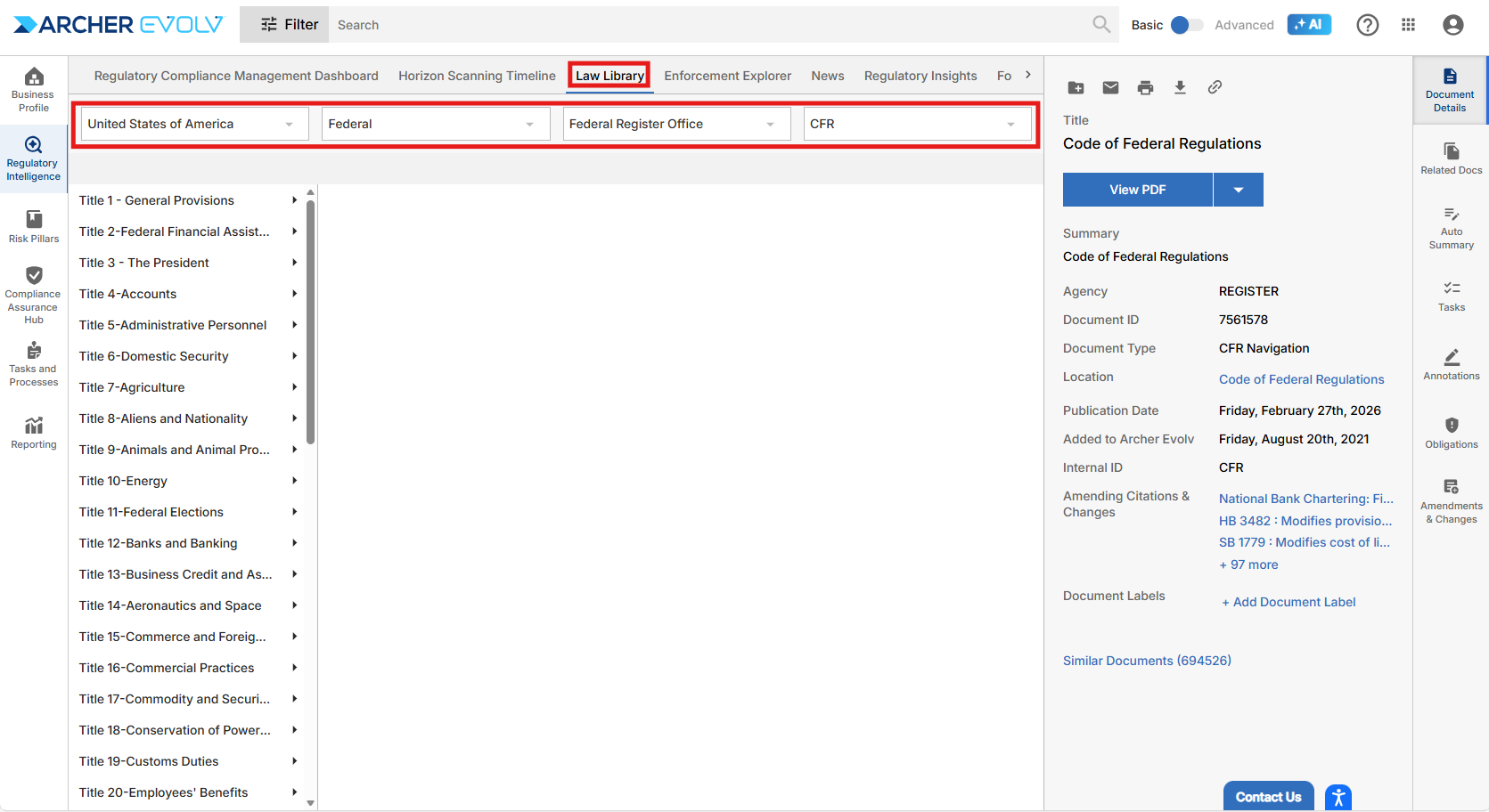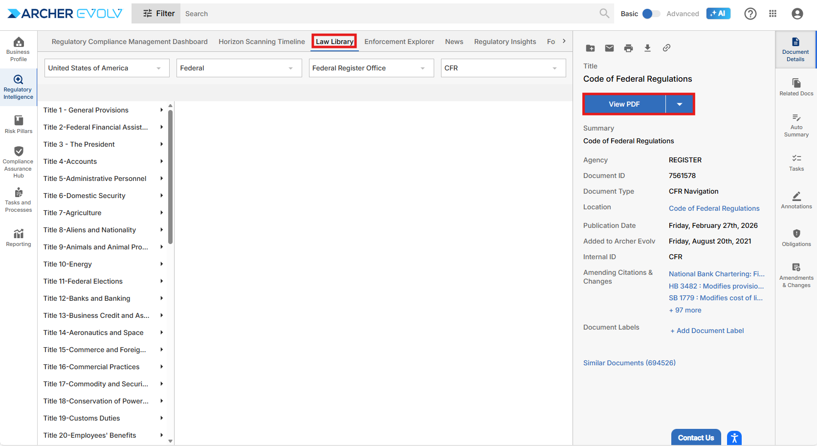The Law Library provides a view of less frequently updated documents that you may use for reference such as CFRs, US Code, Public Law, State Statutes, State Administrative Code, plus international laws and standards from over 20 countries and international bodies. We provide the documents in a familiar, easy-to-use accordion style format to help you quickly locate the specific document you need for your research purposes.