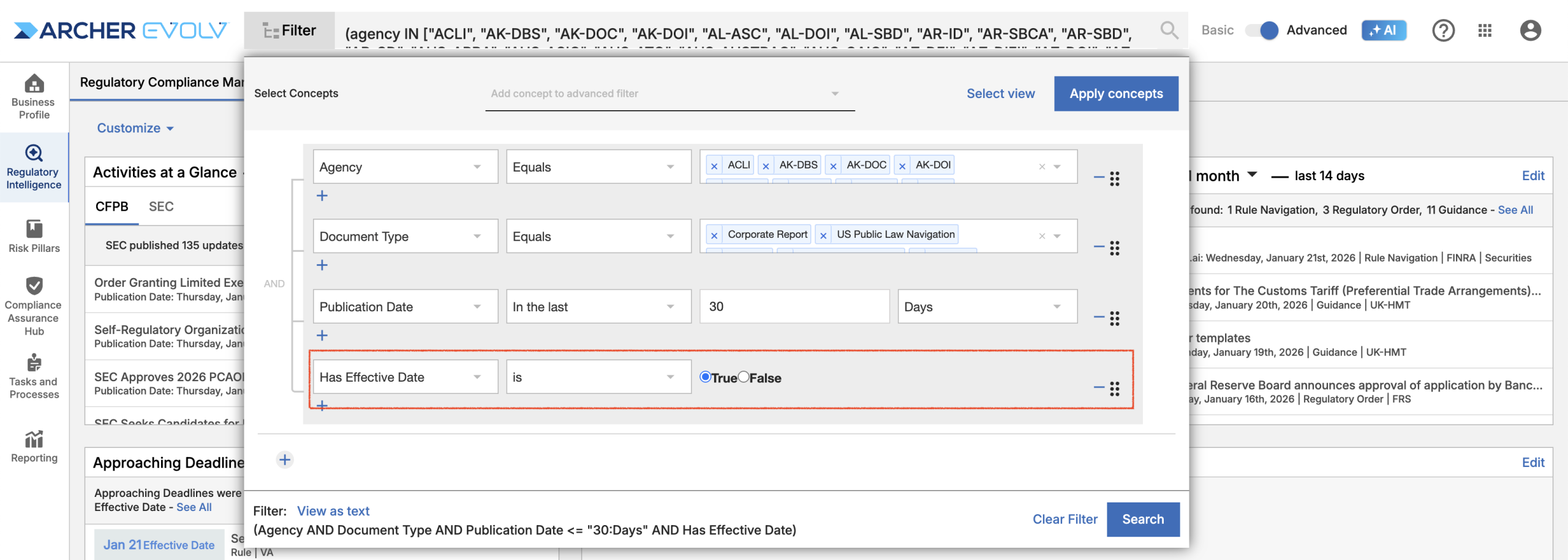 • Advanced Search: A new filter allowing you to search for documents including an effective date has been added.