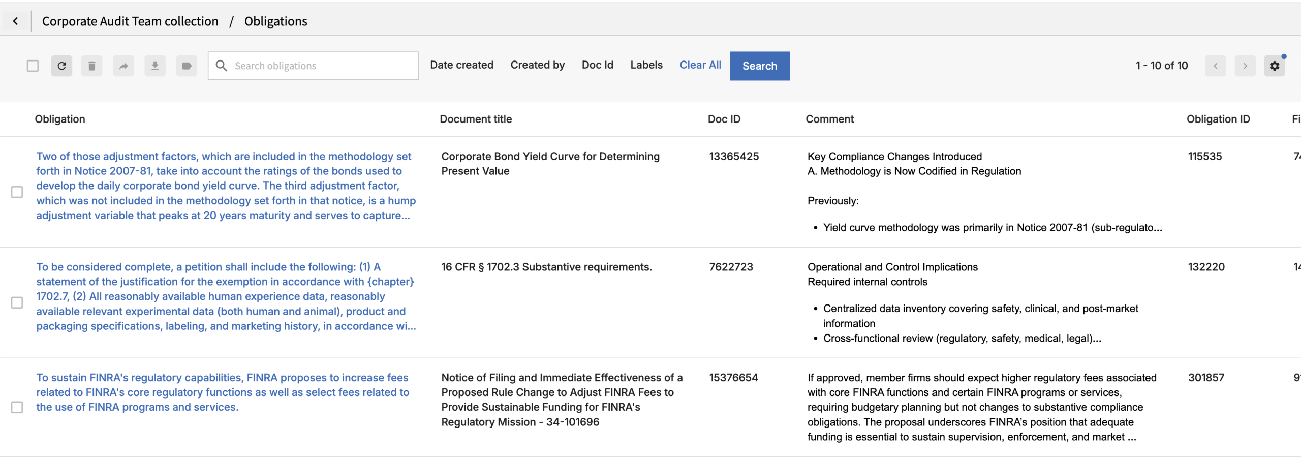 • Obligation Library: Upgraded the obligation view to increase the amount of visible text for obligation, comments, and other potentially lengthy text fields.